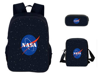 Kids Lightweight School Bookbag Set 3 Pieces N-NASA Backpack with Shoulder Bag Pencil Case Waterproof Daypack for Student