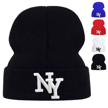 Unisex Letter Embroidery Beanies Winter Warm Hat Hip Hop Cap Beanie Hat Caps for Women Men
