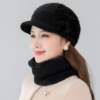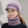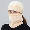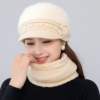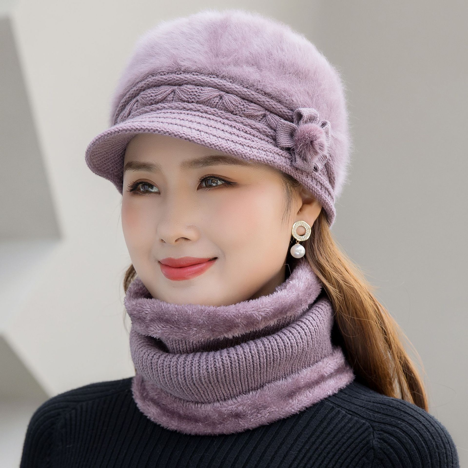 New Women Winter Hat Keep Warm Cap Add Fur Lined Hat & Scarf Warm Set Fashion Hat For Women Casual Faux Fur Flower Knitted Hat